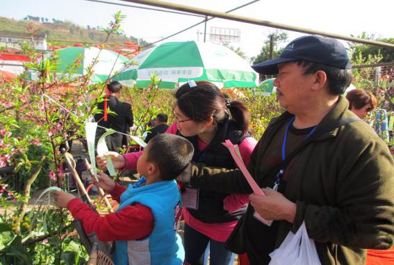 赏花猜谜语,一家人玩的其乐融融。