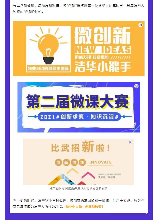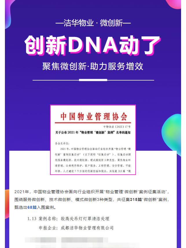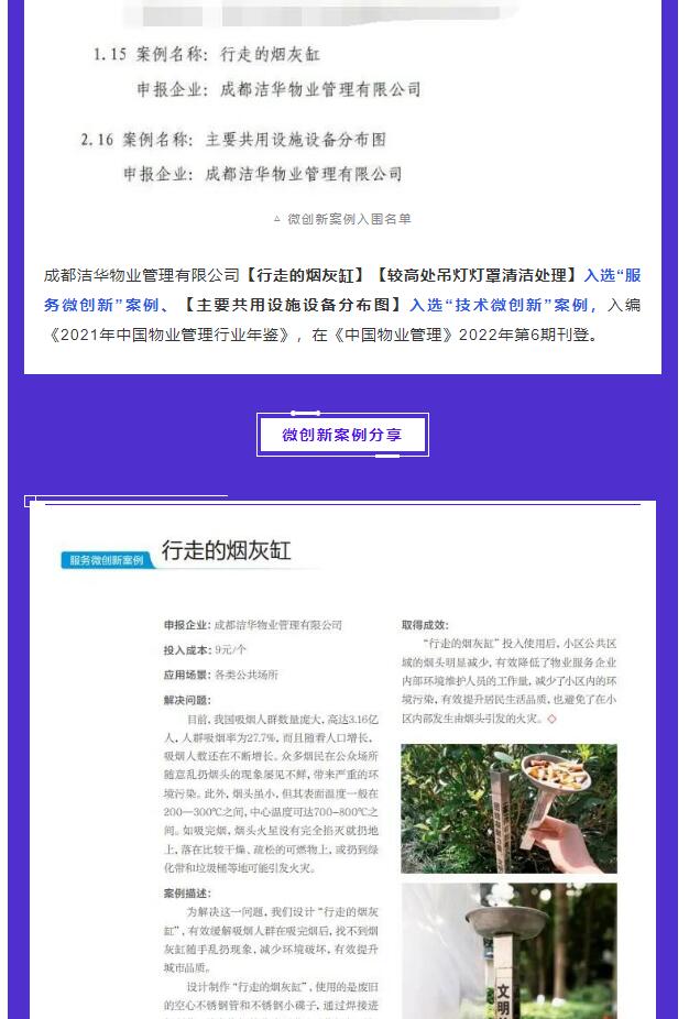 2021年,中国物业管理协会面向行业组织开展“物业管理‘微创新’案例征集活动”,围绕服务微创新、技术微创新、模式微创新3种类型,共征集315篇“微创新”案例,甄选出68篇入围案例。